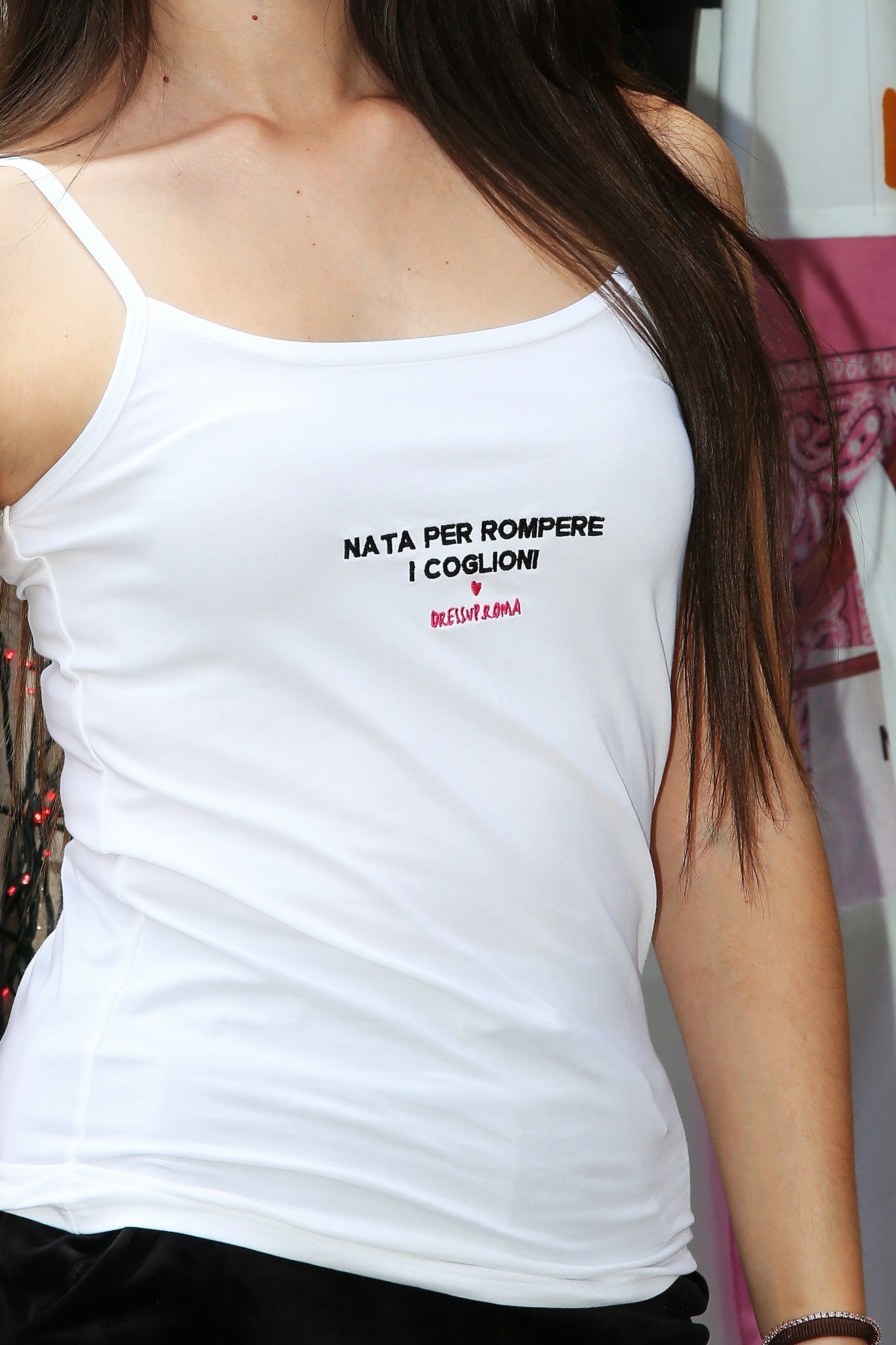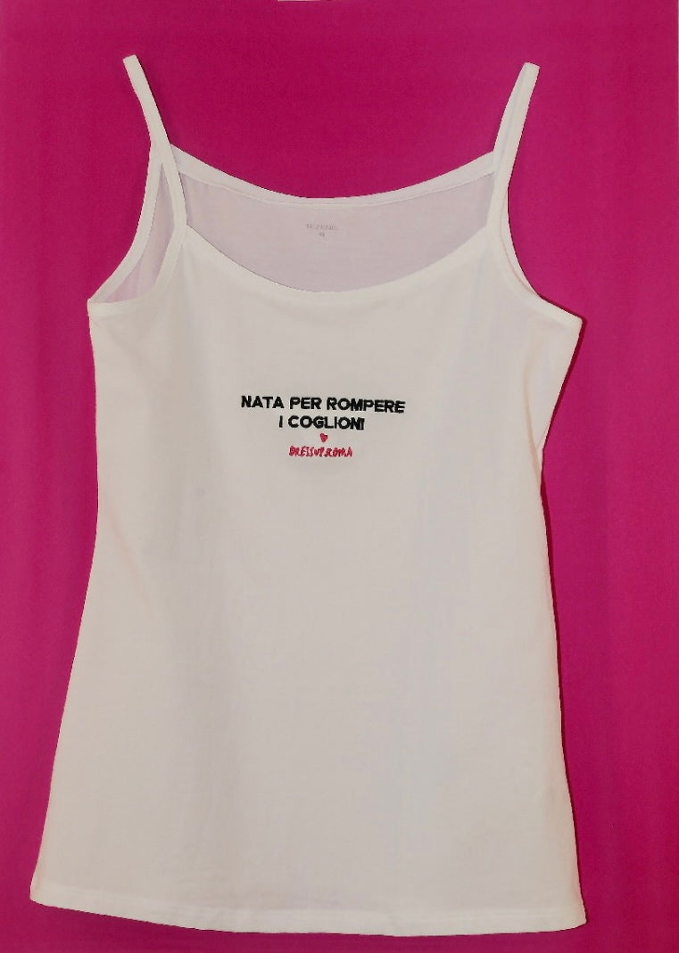 Canotta bianca “Nata per rompere i ****”